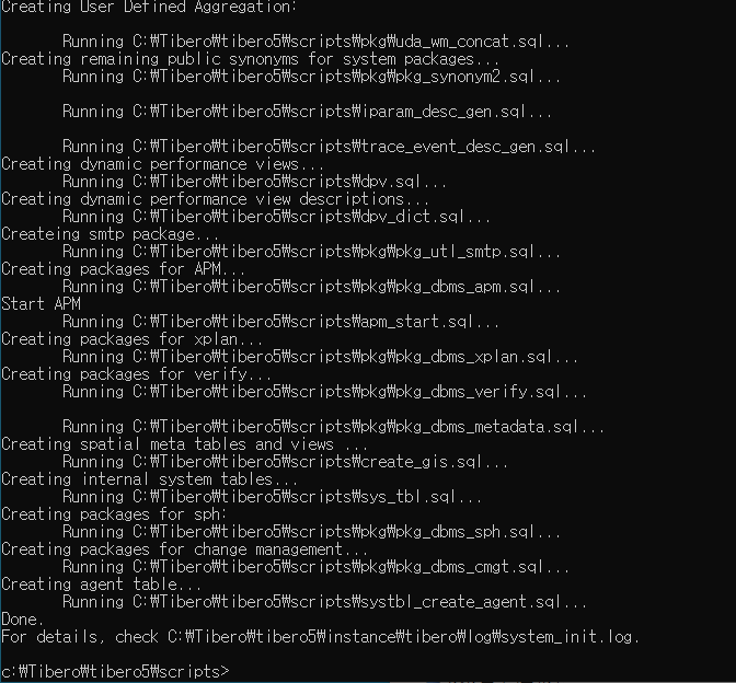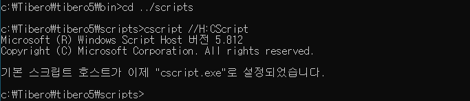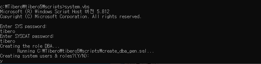C:\Tibero\tibero5\script> system.vbs 명령어 실행
