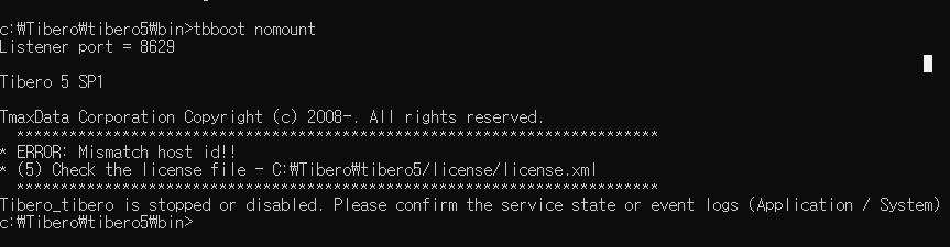 Tibero_tibero is stopped or disabled. Please confirm the service state or event logs (Application / System)