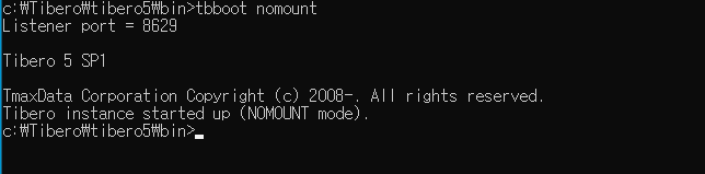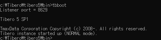 C:\Tibero\tibero5\bin> tbboot 로 티베로를 재기동해준다.
