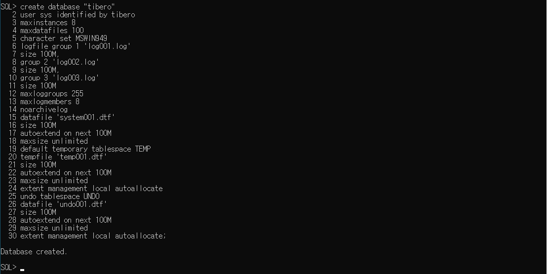 create database "tibero"