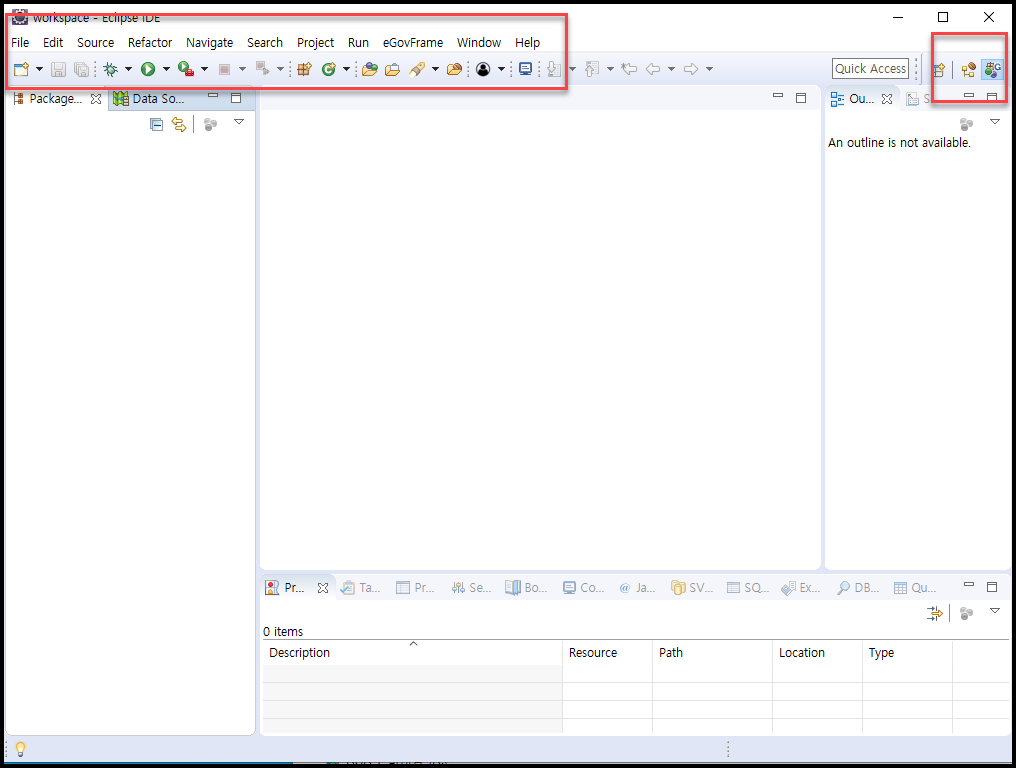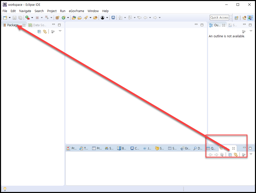 - 옮긴후에 Package explorer, Data explorer를 닫아준다. (편의상)