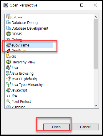 1. egovFrame 메뉴 및 perspective bar 생성