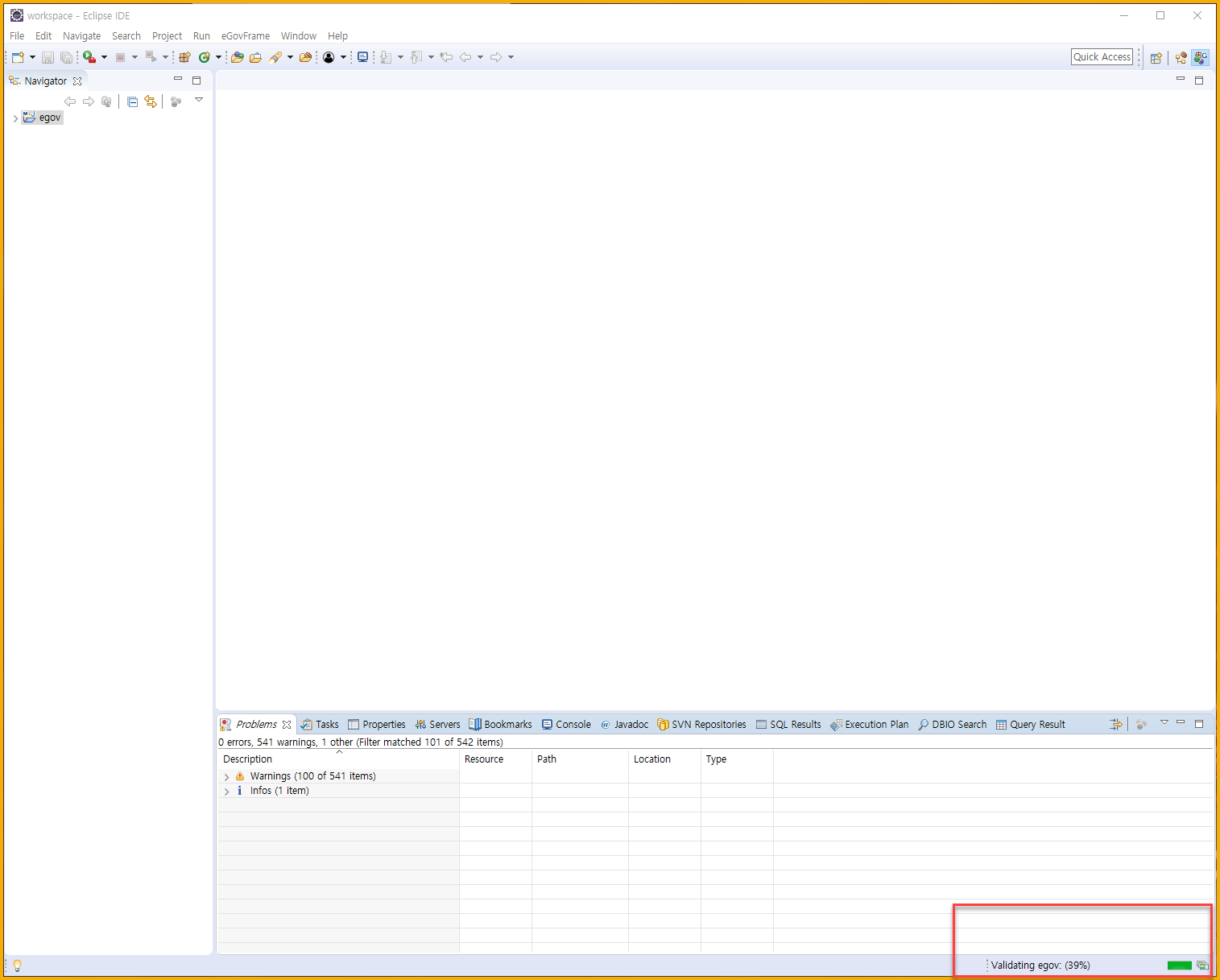 - egovFrame 메뉴는 egovFrame perpective 를 활성화 시켜야만 보인다. (1번에서 진행)