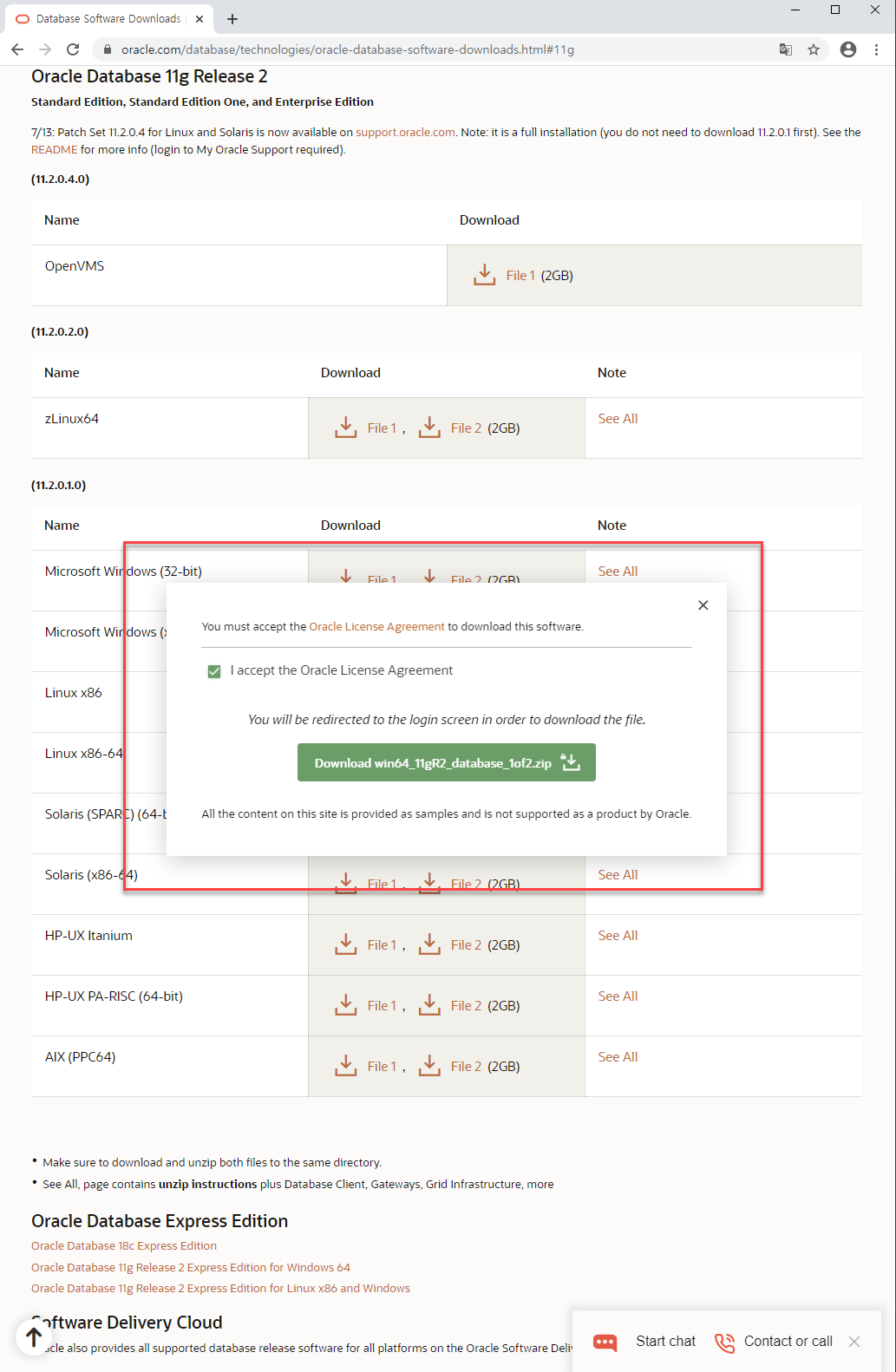 Oracle Databse 11g Release 2 에서 설치하고 하는 버전을 확인하고 다운로드 받는다.