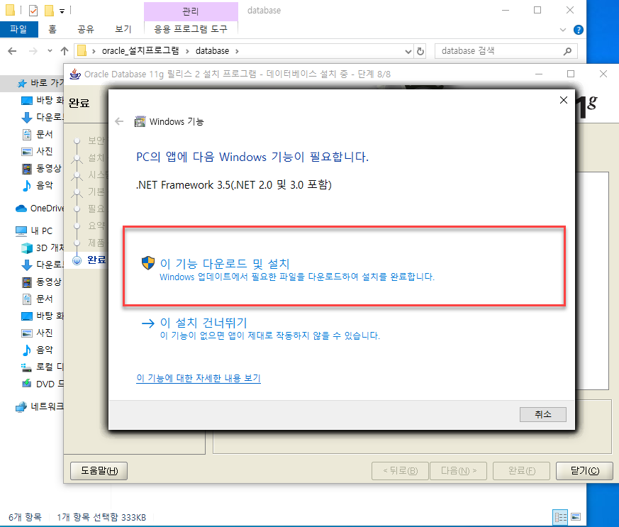 아래 화면이 나오면 이 기능 다운로드 및 설치를 눌러서 설치를 해준다.