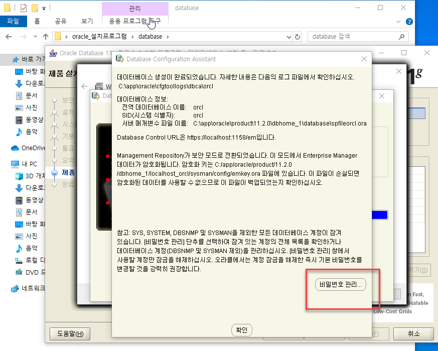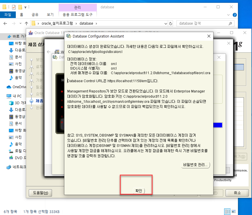 전역데이타베이스 이름을 편의상 orcl 정도로만 해뒀다.