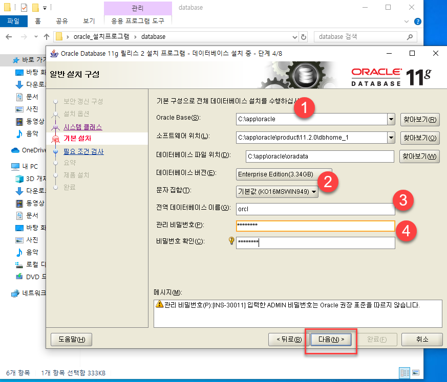 이전에 오라클을 윈도우에서 설치를 해봤다. https://webobj.tistory.com/23 오라클 설치(Windows 10, 11g) 윈도우에서 오라클 설치 Windows 10, Oracle 11g(Oracle Database 11g Release 2) 11.2.0.1.0 윈도우에..