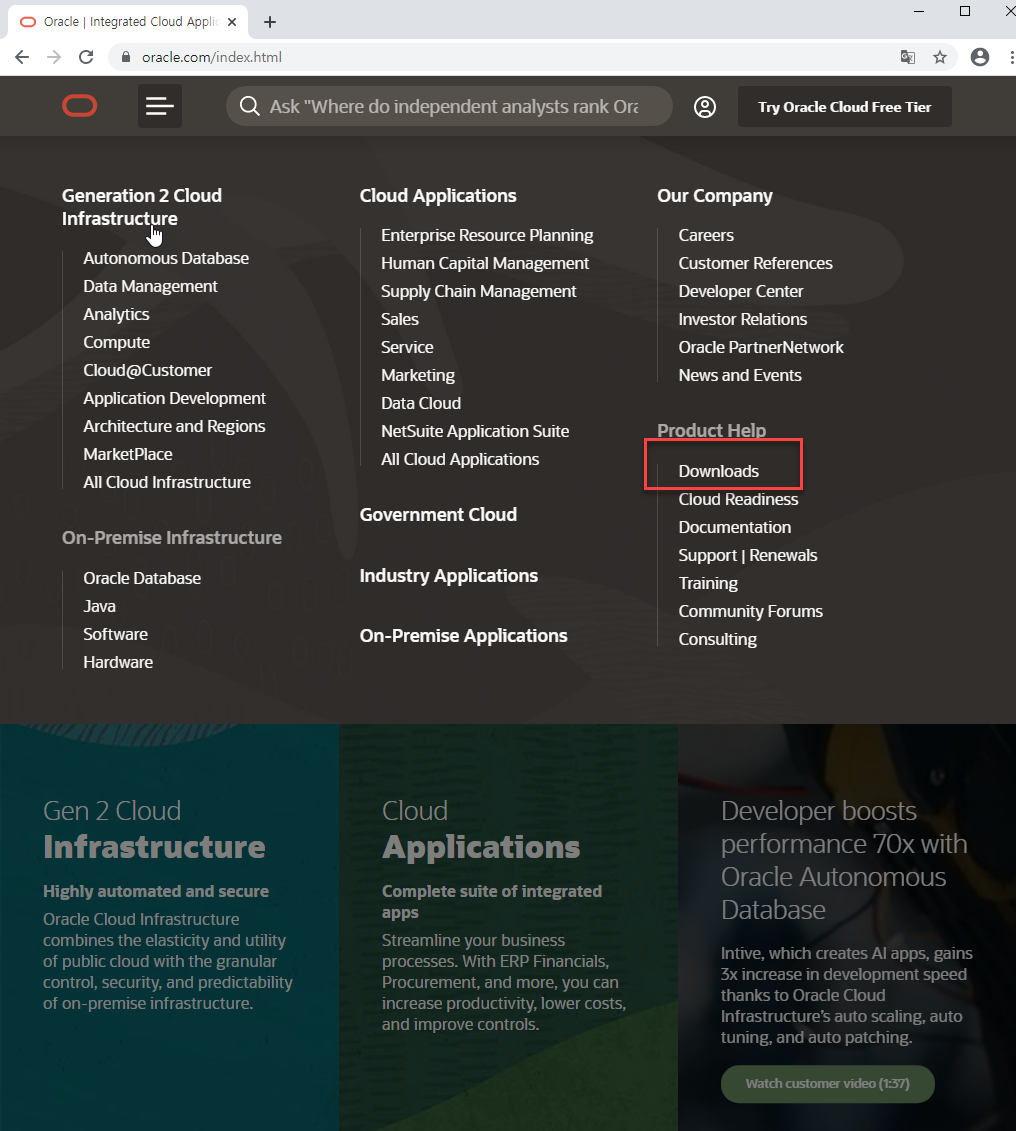 메인 > Product Help >Downloads 를 클릭하여 들어간다.