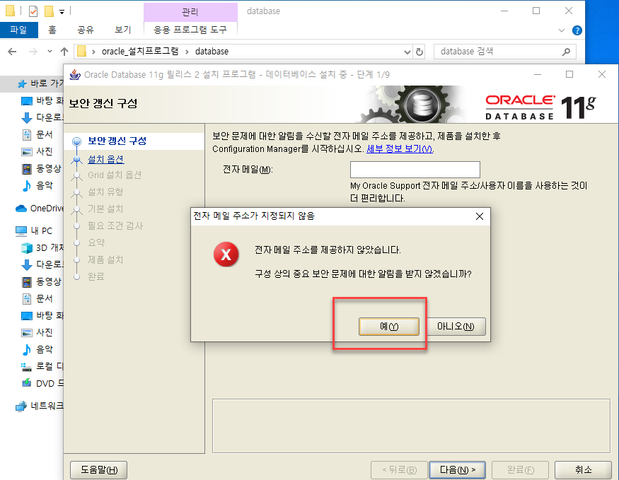 아래 화면에서 예를 눌러도 되고 위 화면에서 이메일 주소를 잘 입력해도 된다.