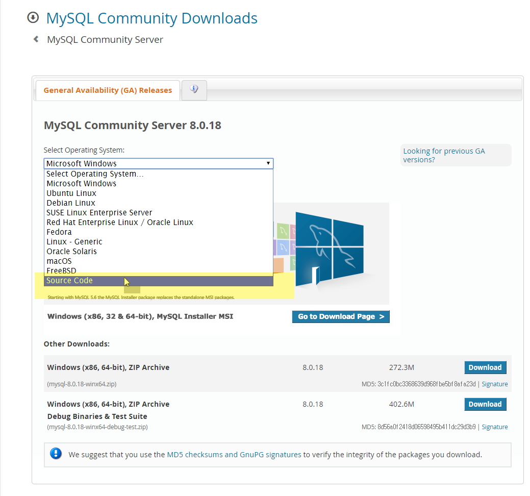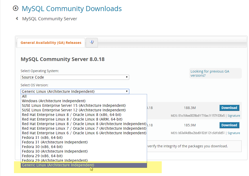 Select Version: 5.7.28 5.6.46 5.5.62 Select Operating System: Select Operating System… Microsoft Windows Debian Linux Ubuntu Linux SUSE Linux Enterprise Server Red Hat Enterprise Linux / Oracle Linux Fedora Linux - Generic Oracle Solaris macOS Source Code