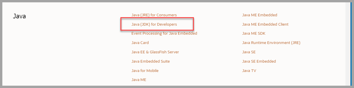 3. 아래로 스크롤해서 Java 영역에 Java(JDK) for Developers 클릭