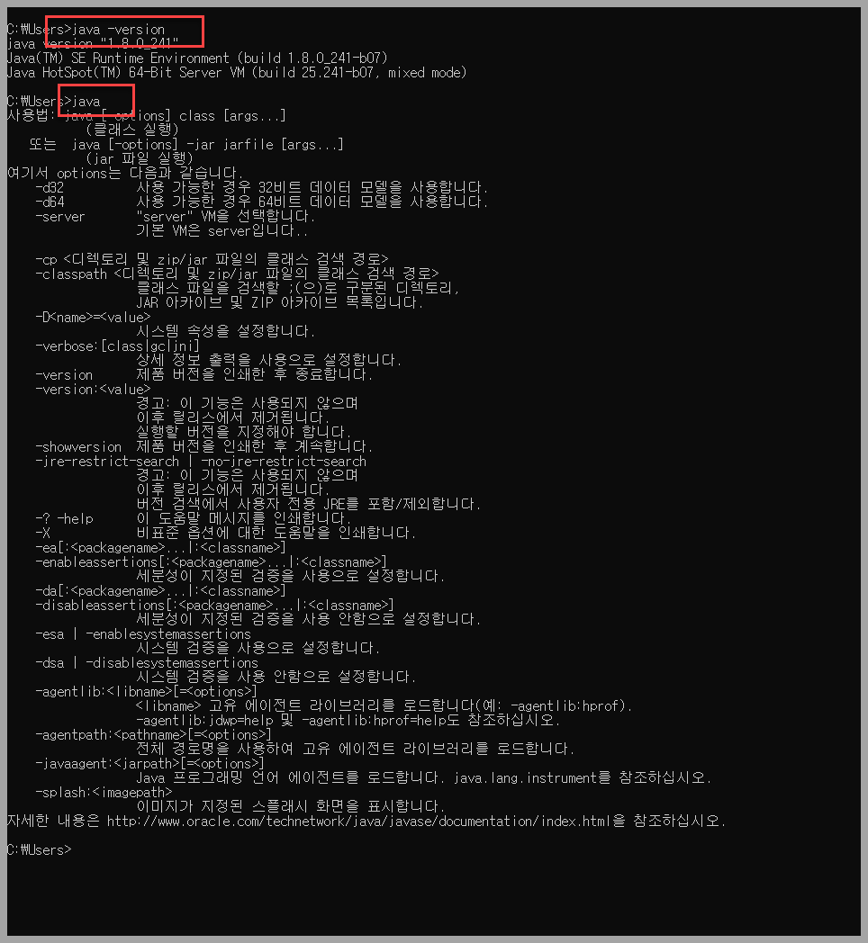 9. 도스창을 열어 다음 명령어를 쳐본다.