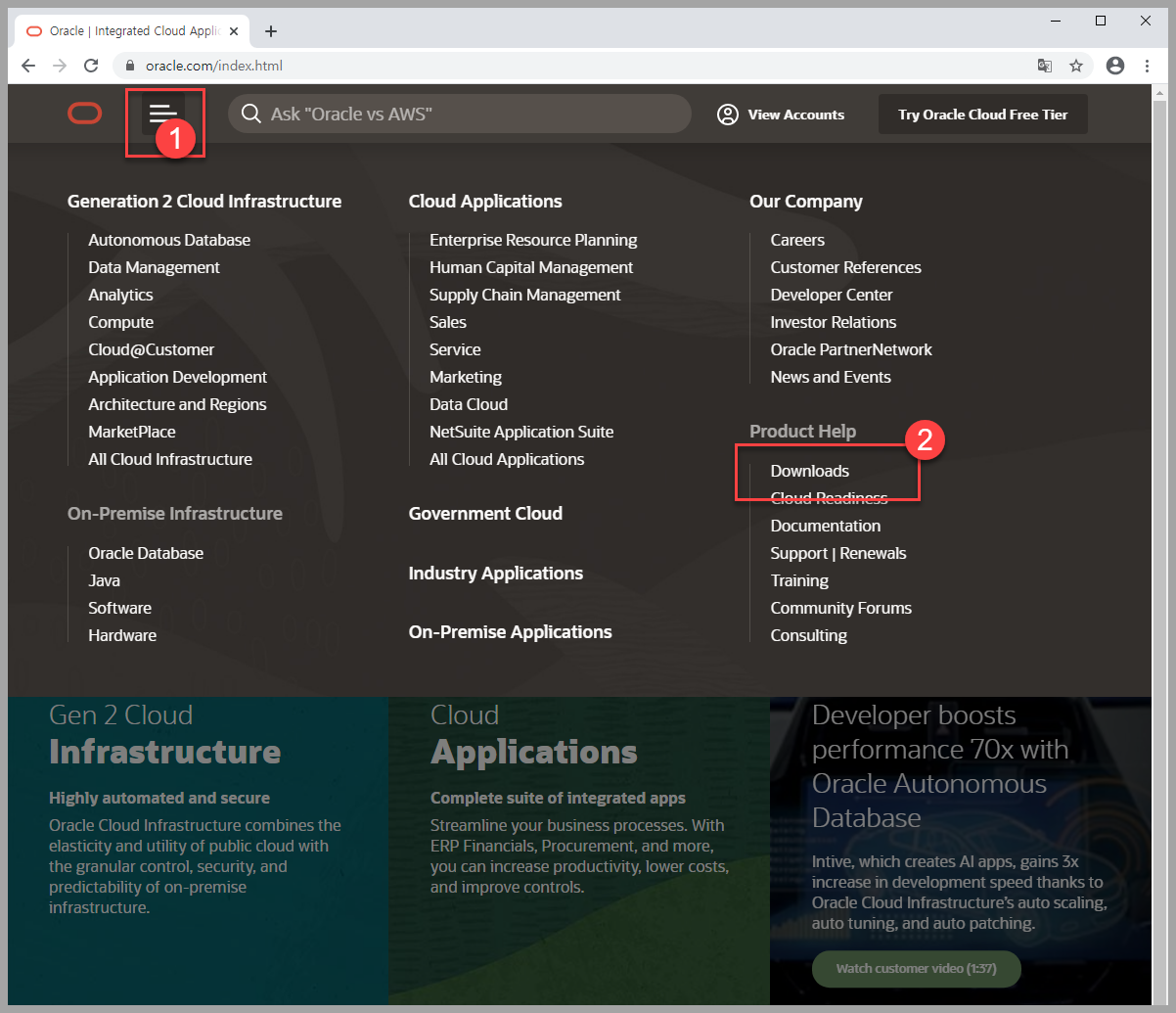 7. 오라클 계정에 로그인 / 계정이 없으면 계정을 생성한 후에 위 과정을 다시 한번 다운로드가 됨