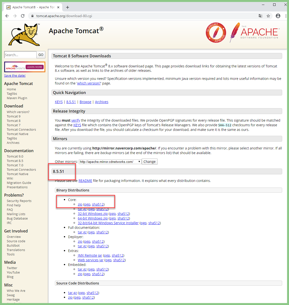 Tomcat 8 을 다운로드 받을려고 한다.