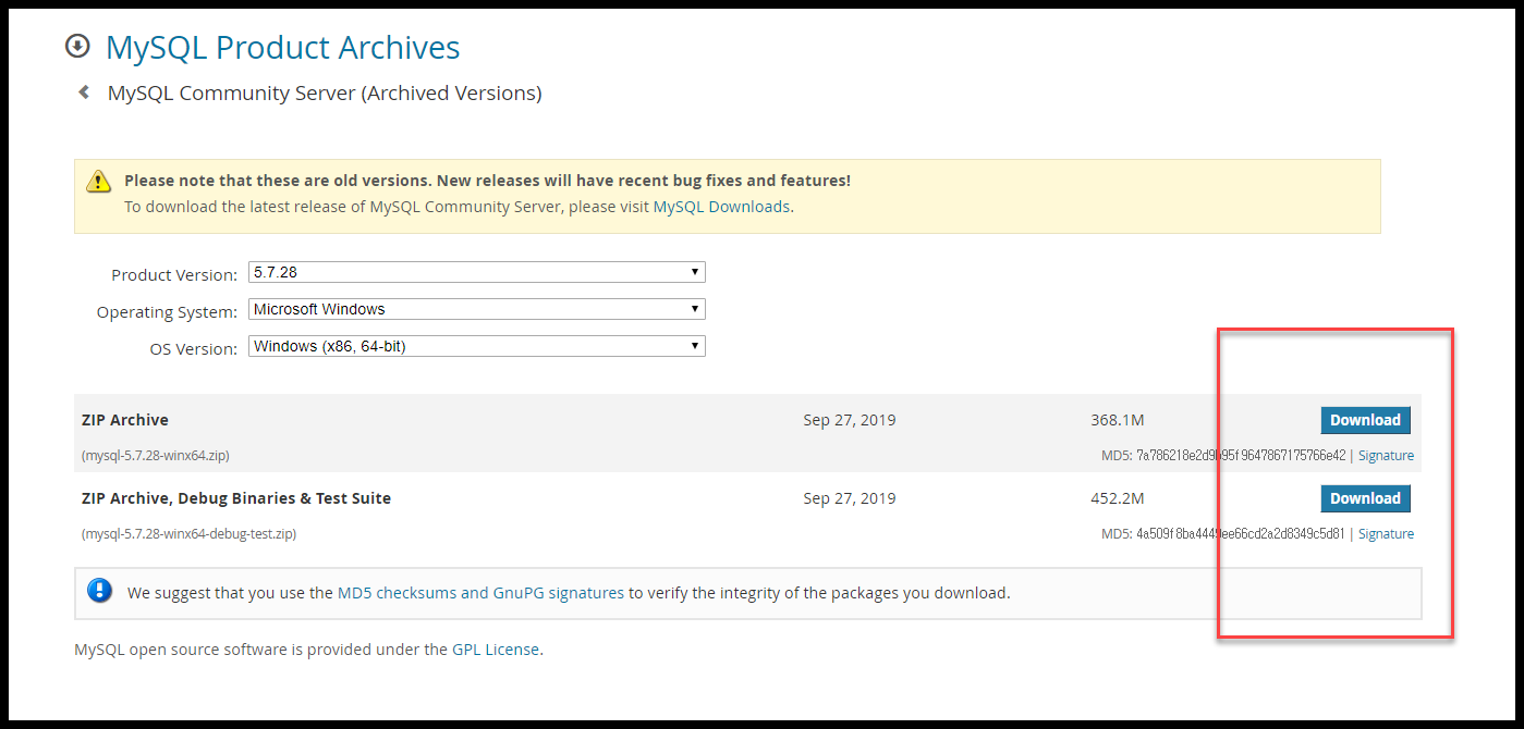 Please note that these are old versions. New releases will have recent bug fixes and features! To download the latest release of MySQL Installer, please visit MySQL Downloads. MySQL open source software is provided under the GPL License.