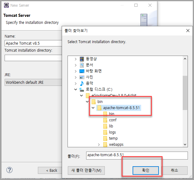 - 이제 옮겨놓은 톰캣의 경로를 선택해준다.
