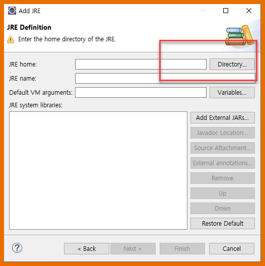 - JRE home 이다. JAVA_HOME과 착각하지 않도록 한다. (예전에 많이 착각을 했었다...)