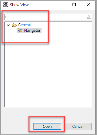 - n 이라고 입력을 하면 Navigator가 나온다. 선택후 Open.