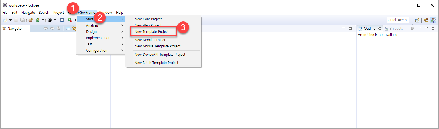 - eGovFrame > Start > New Template Project 를 클릭한다.