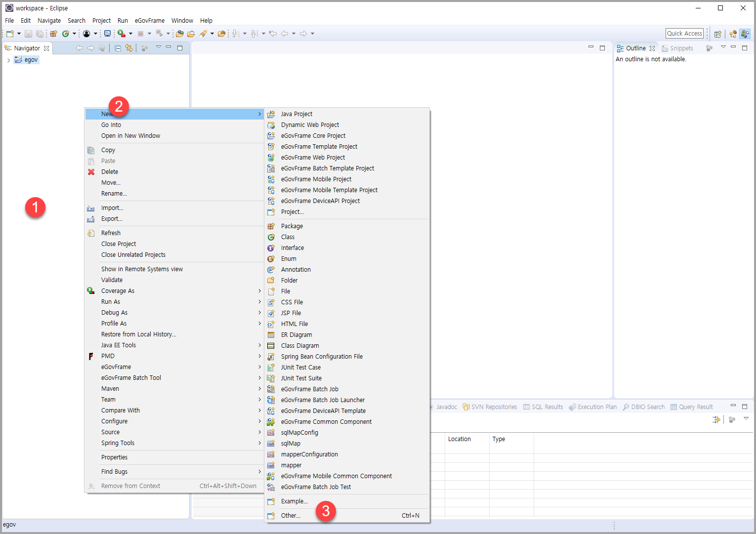- 마우스 오른쪽 버튼 > New > Other 클릭