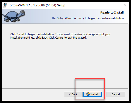 - 다운로드 받은 tortoiseSVN 를 install 한다.