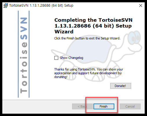 - 여기서는 for 64-bit OS 용인 TortoiseSVN 1.13.1 을 받았다.