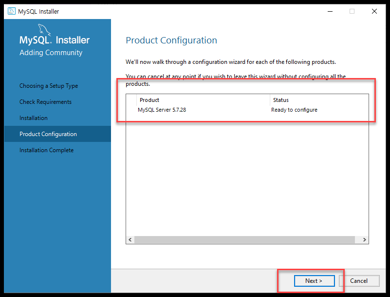 - Choosing a Setup type 에서 선택을 다시 한다. Server only로 한다.