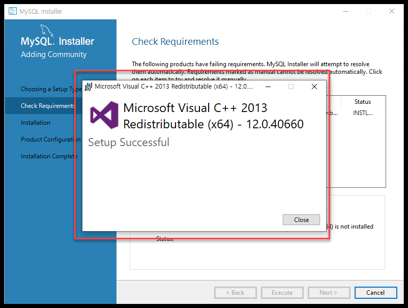 - Microsof Visual C++2013 Redistributable ... 설치가 완료되었다.