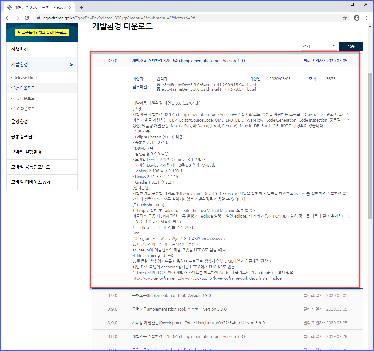 전자정부 표준프레임워크 3.9 다운로드 본문