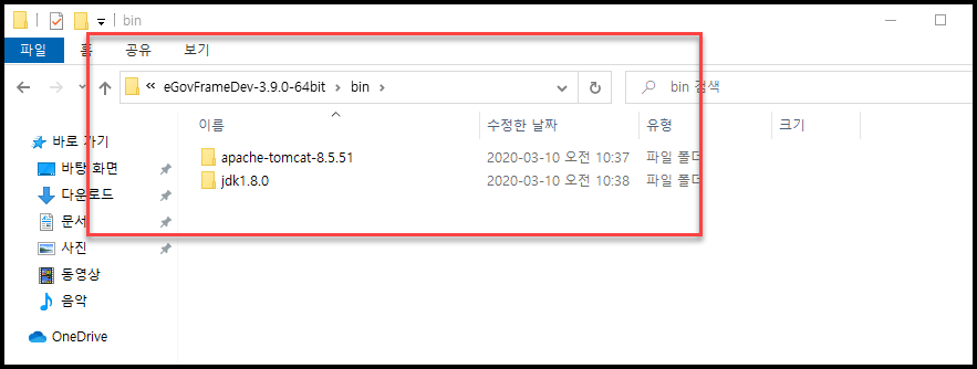 - C:\eGovFrameDev-3.9.0-64bit 하위에 bin 폴더를 생성한다.