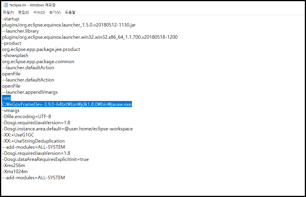 3. eclipse.ini 를 수정