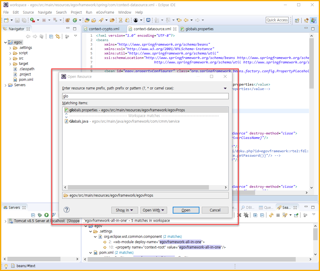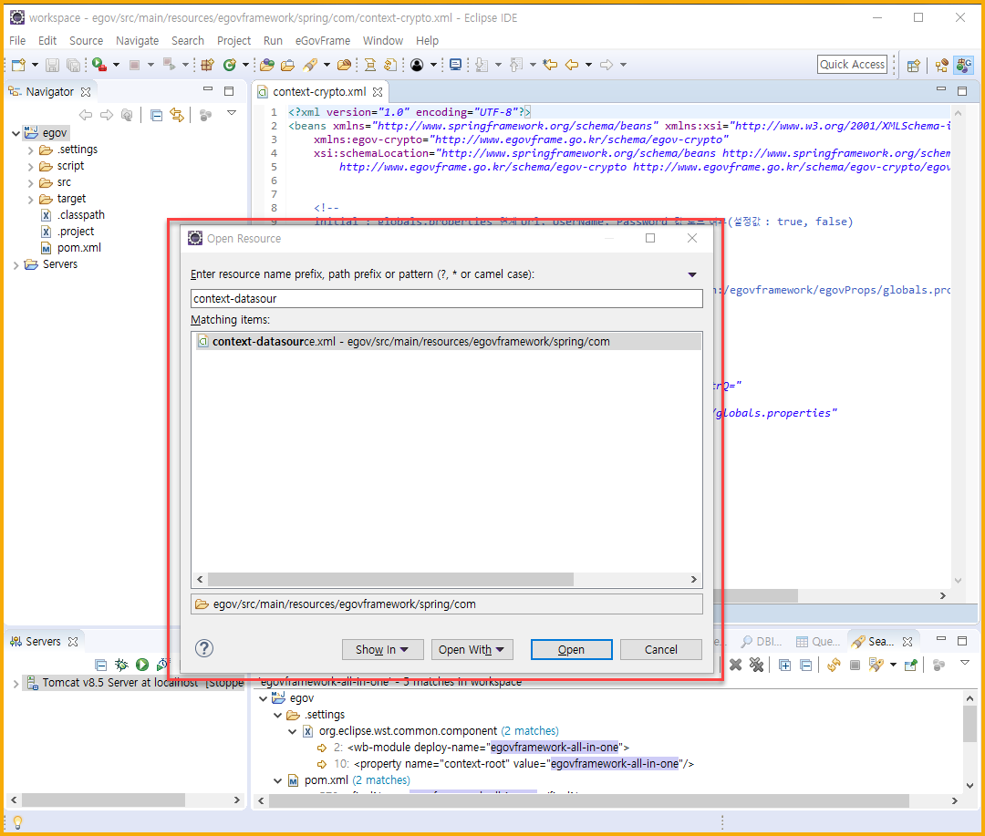 - Ctrl + Shift + r 을 누른다음 context-crypto.xml 을 입력하여 파일을 연다.