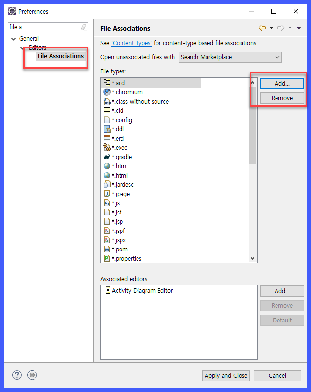 - *.xml 을 클릭하면 하단에 사용가능한 editor 목록이 나온다.