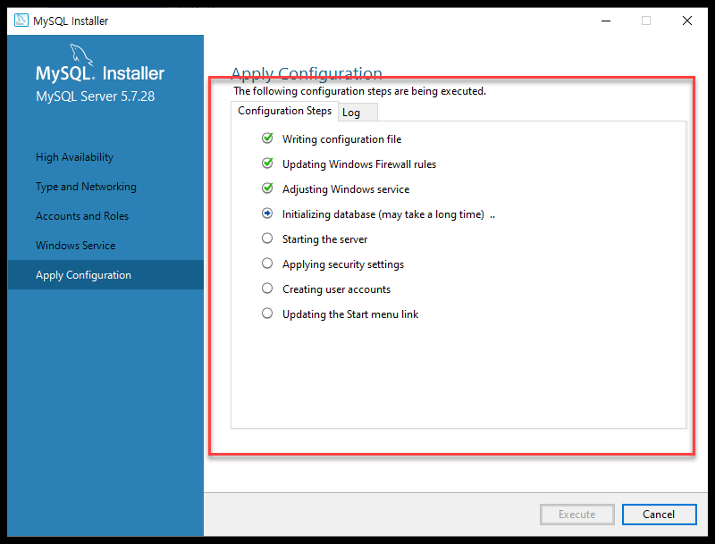 - initializing database 작업같은 경우에는 may take a long time 이라고 한다. 조금 시간이 걸릴 수 있다.