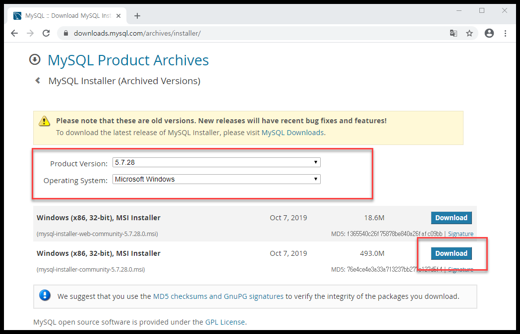 Please note that these are old versions. New releases will have recent bug fixes and features! To download the latest release of MySQL Installer, please visit MySQL Downloads. MySQL open source software is provided under the GPL License.