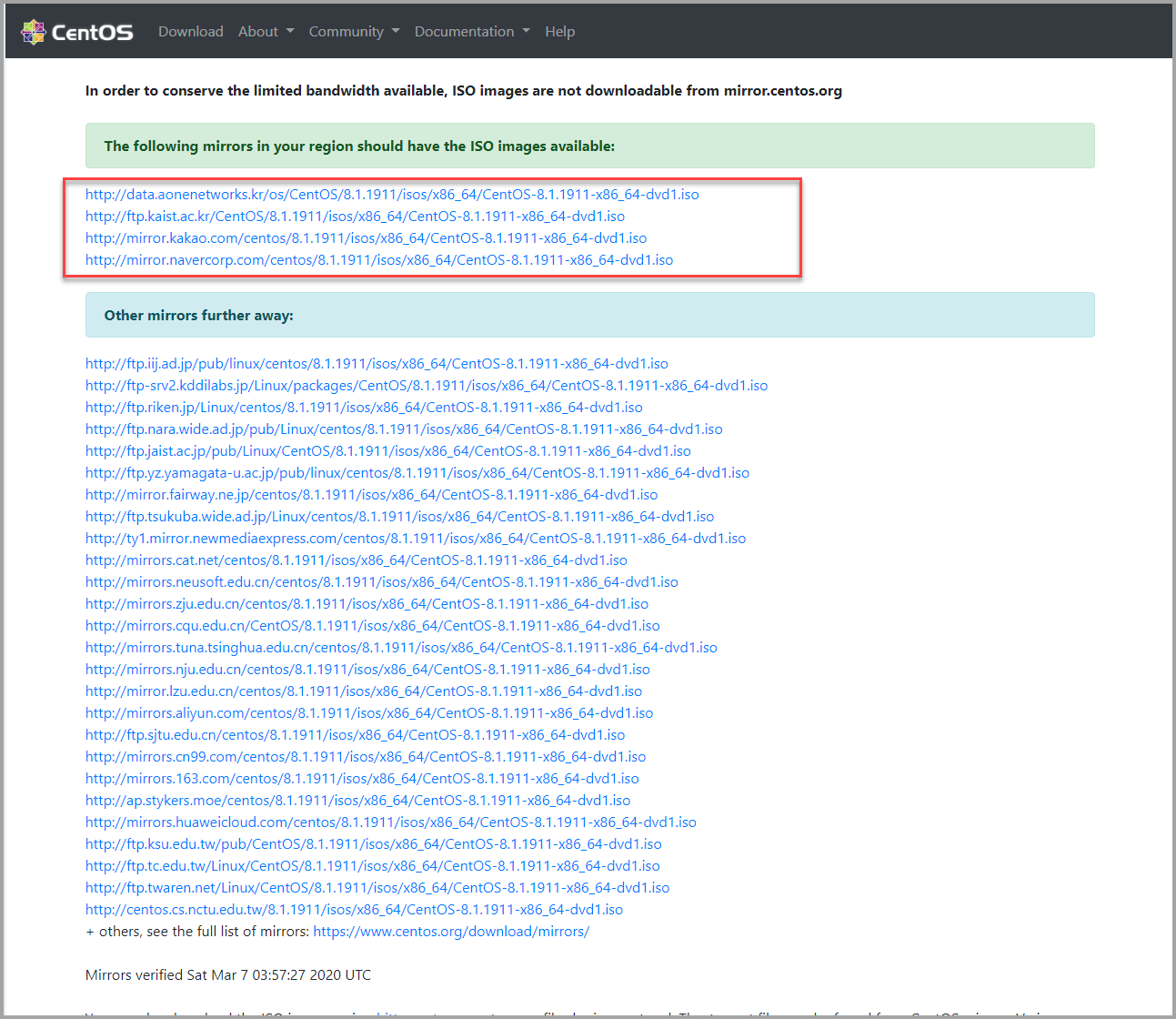 Cent OS는 아래 URL에서 다운로드 받을 수 있다.